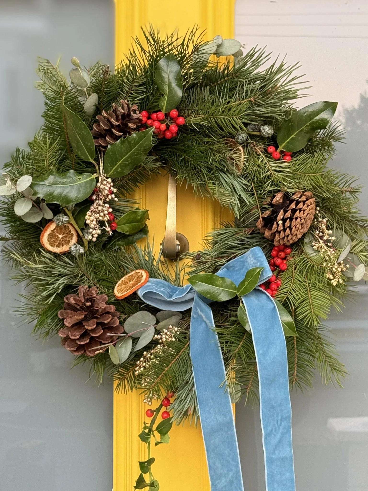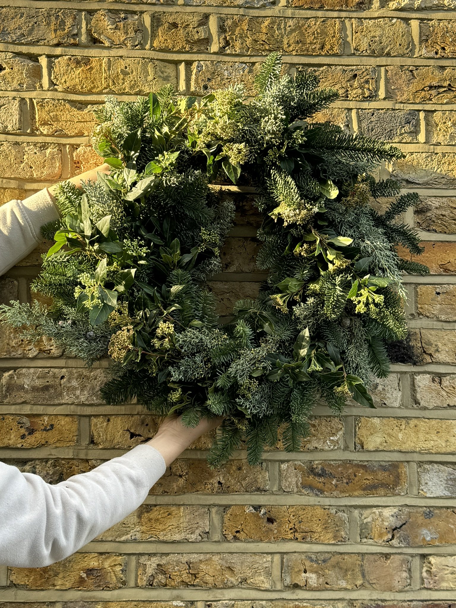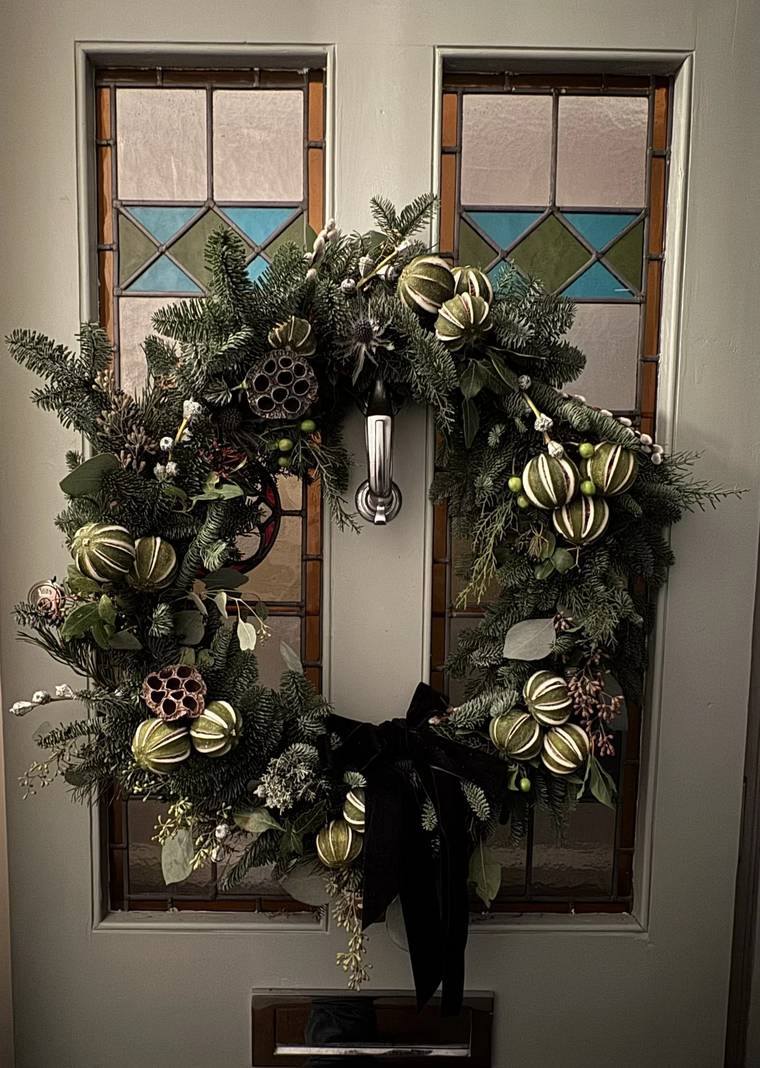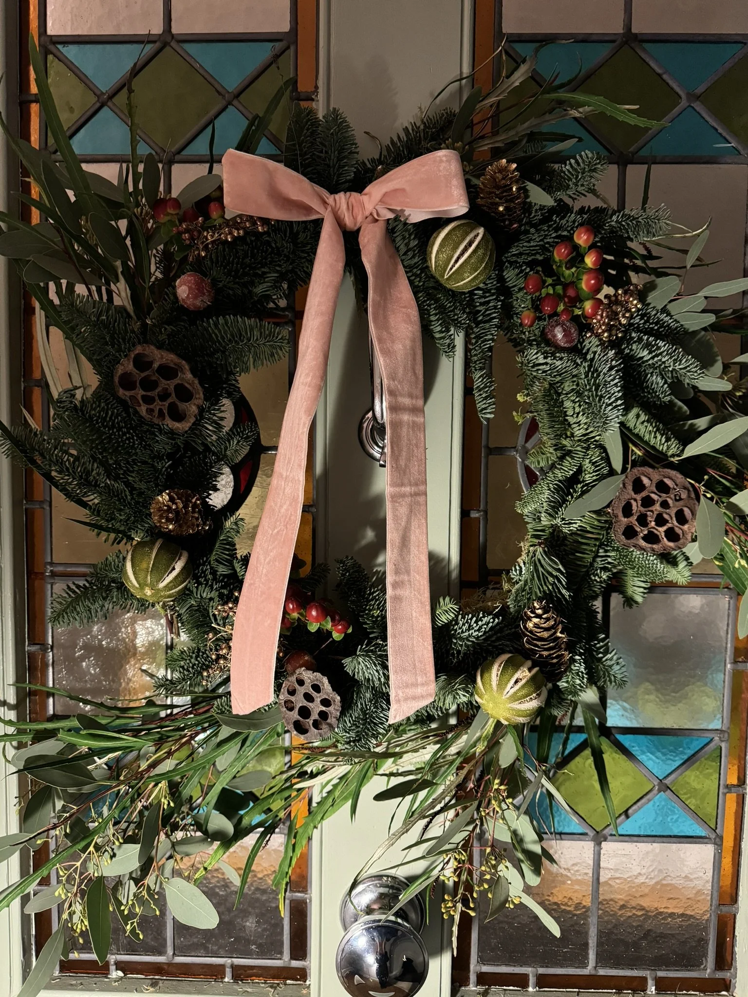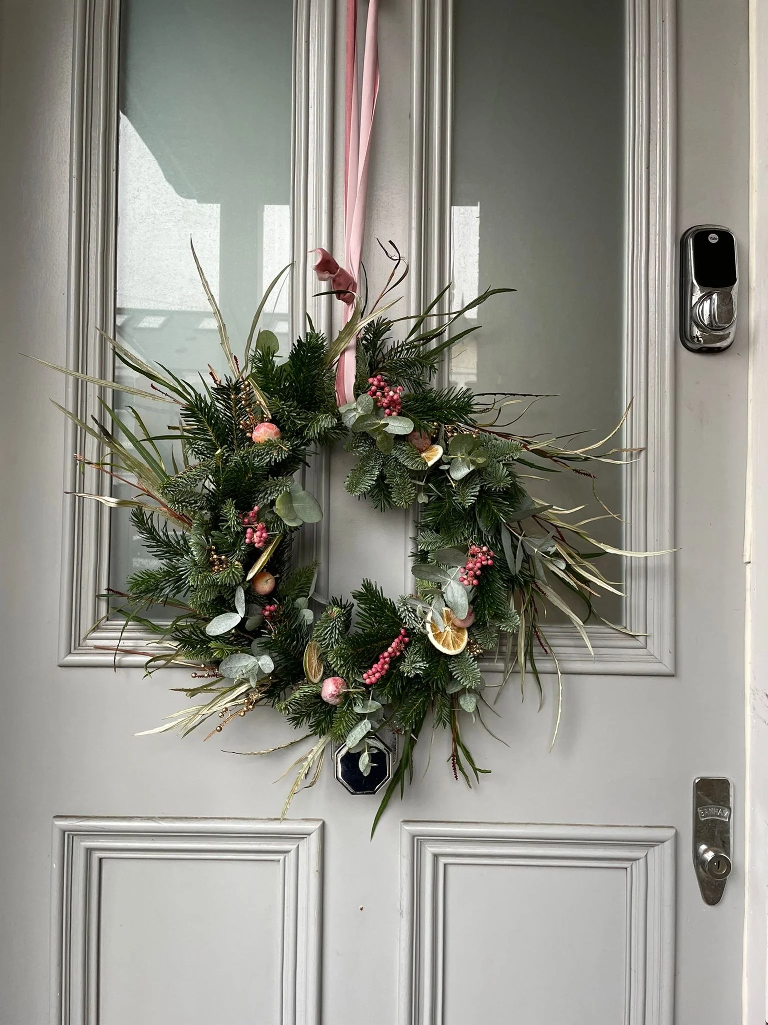 I’m Nicola, and I’m behind The London Wreath Company: heavily influenced by the decades living and working in the US where wreaths adorn doors throughout the year, ushering in the change of season. Inspired by the abundance of fresh seasonal foliage, flowers and natures accessories, I love to host workshops and help others create a beautiful seasonal decoration for their front door, or any doorway, garden or patio!